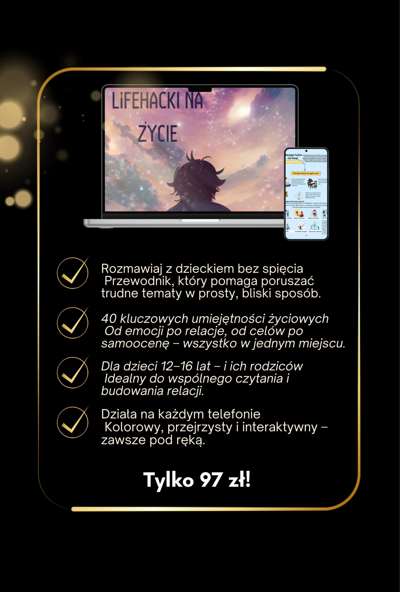 Z tej potrzeby, i z doświadczenia pracy z młodzieżą, powstał ten e-book. To nie teoria – to praktyczne narzędzie, które pomoże Ci rozmawiać z dzieckiem o wszystkim, o czym chcesz, ale nie wiesz jak.